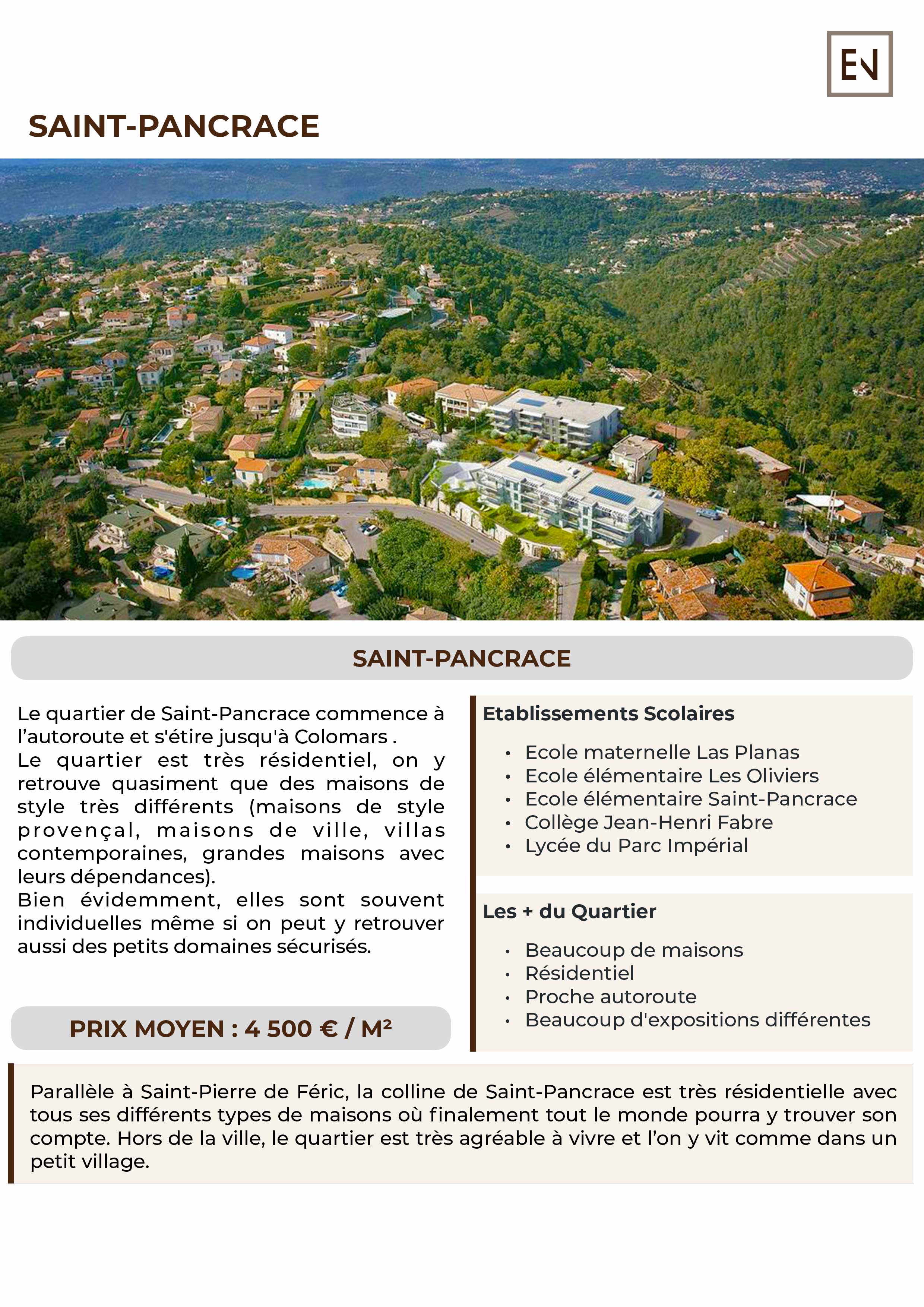 Parallèle à Saint-Pierre de Féric, la colline de Saint-Pancrace est très résidentielle avec tous ses différents types de maisons où finalement tout le monde pourra y trouver son compte. Hors de la ville, le quartier est très agréable à vivre et l’on y vit comme dans un petit village.