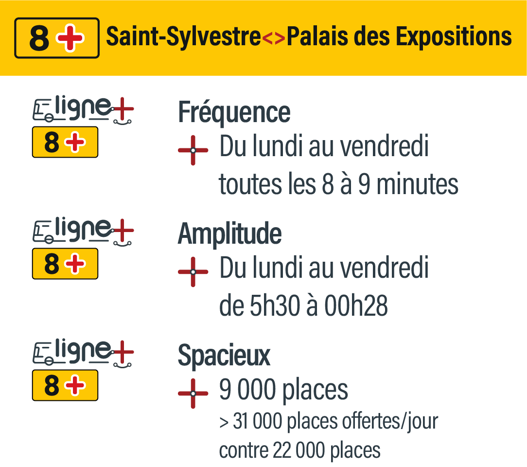 La capacité des bus de la ligne 8 + passe de 100 à 150 places ! Une solution intéressante aux heures de pointe pour voyager dans de bonnes conditions, sans être serré.
