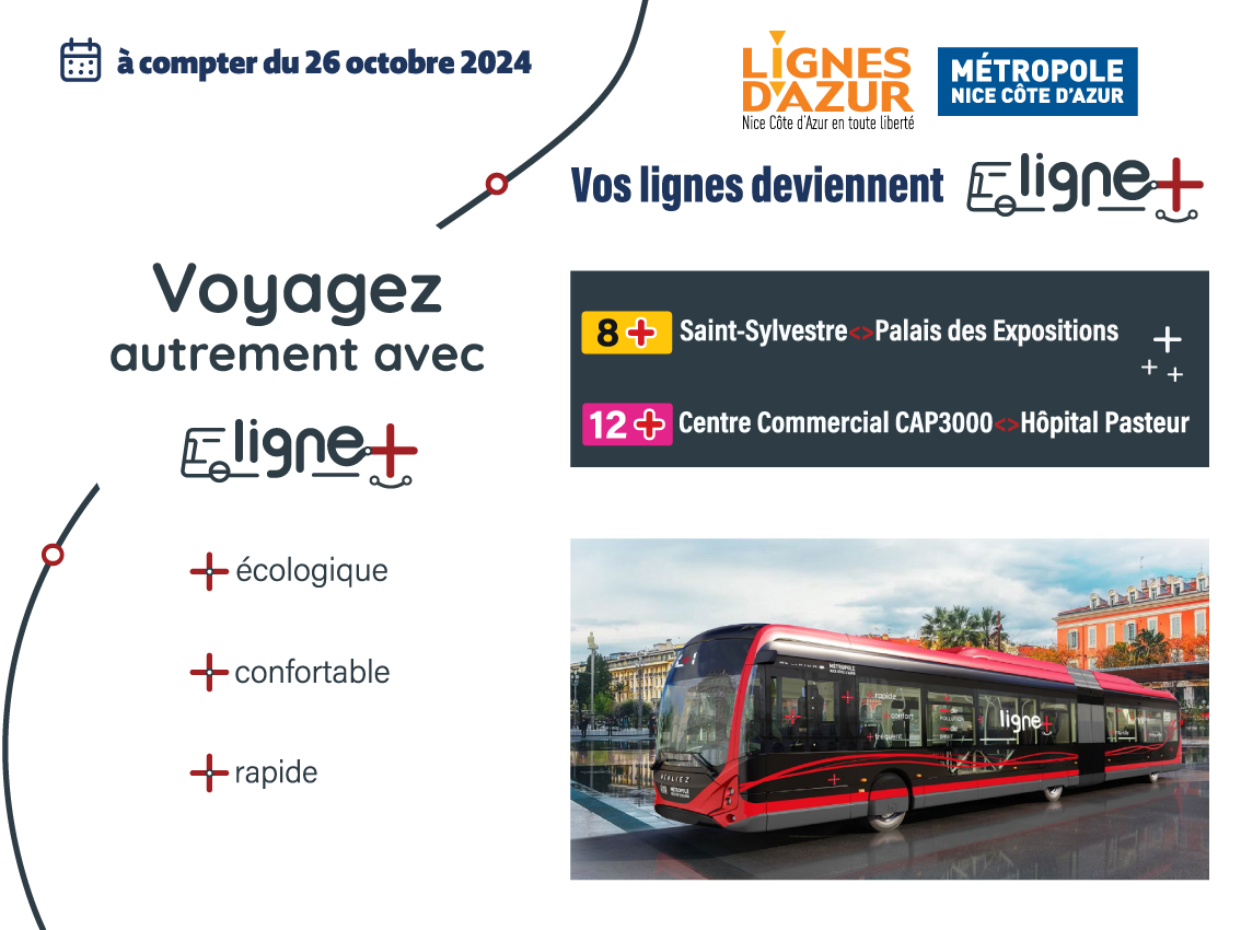 Plus d’informations Pour plus d’informations sur les itinéraires et les horaires des Lignes 8+ et 12 +, rendez-vous sur le site Lignes d’Azur (lignesdazur.com). |